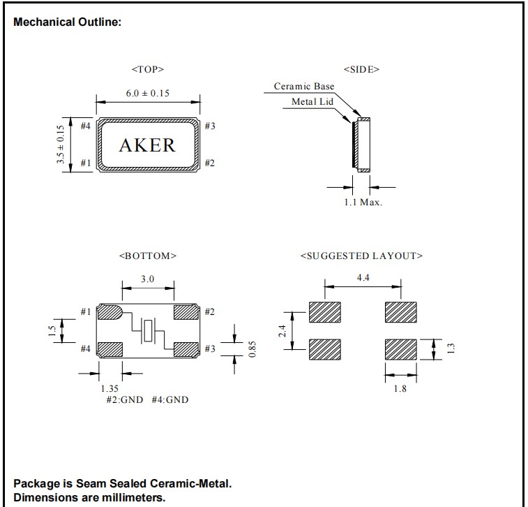 外形尺寸:6.0x3.5毫米表面安装-4个衬垫