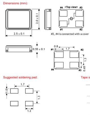 (2) 请仔细处理内外盒与卷带。外部压力会导致卷带受到损坏。耶格晶振,KX-6晶振,2520mm晶振.