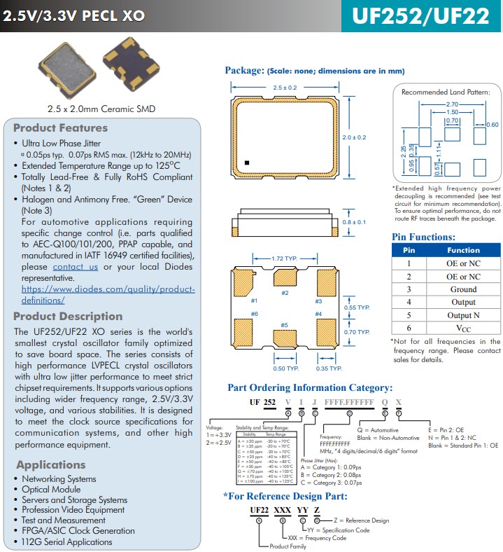 更多>>UF252/UF22系列具有超低抖动性能的高性能LVPECL晶体振荡器组成