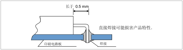 在一个不同扩张系数电路板(环氧玻璃)上焊接陶瓷封装产品时,在温度长时间重复变化时可能导致端子焊接部分发生断裂,请事先检查焊接特性.