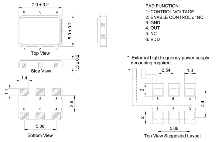 BR,BJ,BK,BM,BN,BP 7050mm晶振,压控晶体振荡器压控晶振(VCXO)压控石英晶体振荡器基本解决方案,PECL输出,输出频率60 MHz到200 MHz之间,出色的低相位噪声和抖动,三态功能,应用:SDH/ SONET,以太网,基站,笔记本晶振应用,符合RoHS/无铅.