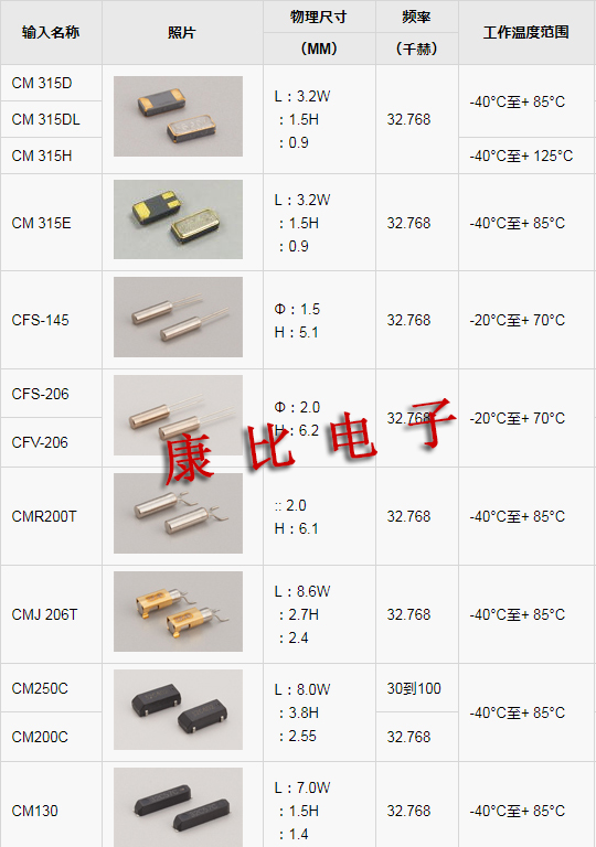 更多>>CITIZEN无源32.768K时钟CM51932768DZYT晶振